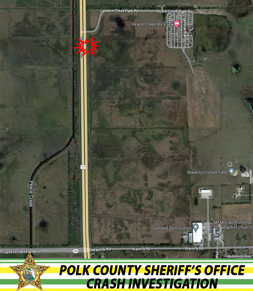 At around 8:20 pm on Wednesday, February 15, 2023, PCSO deputies and Polk County Fire Rescue responded to a two-vehicle crash on U.S. 27 near the Peace Creek RV Park.